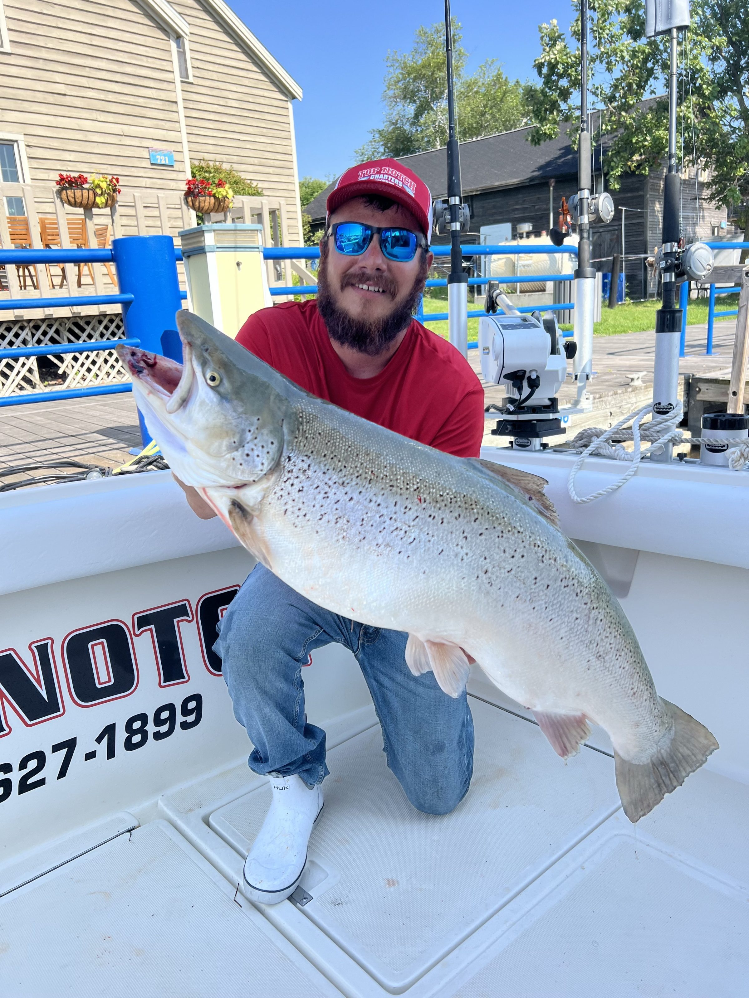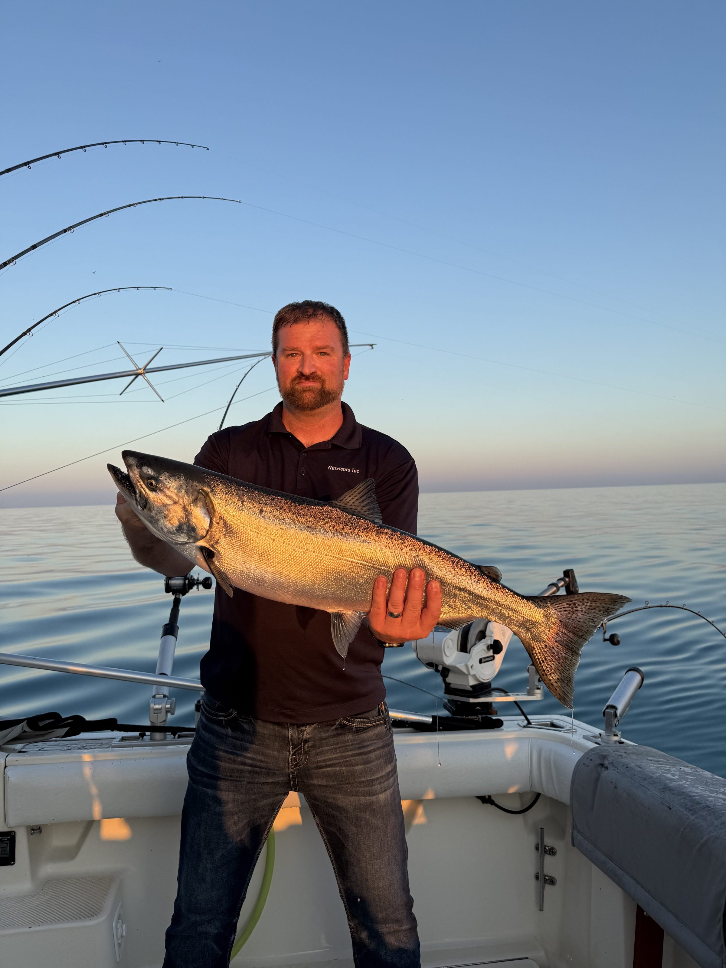 Fish Lake Michigan aboard a 37ft Tiara for salmon and trout. Luxury amenities, all gear included. License required. Bring food and drinks; fish cleaning available. Up to six anglers seasonal.